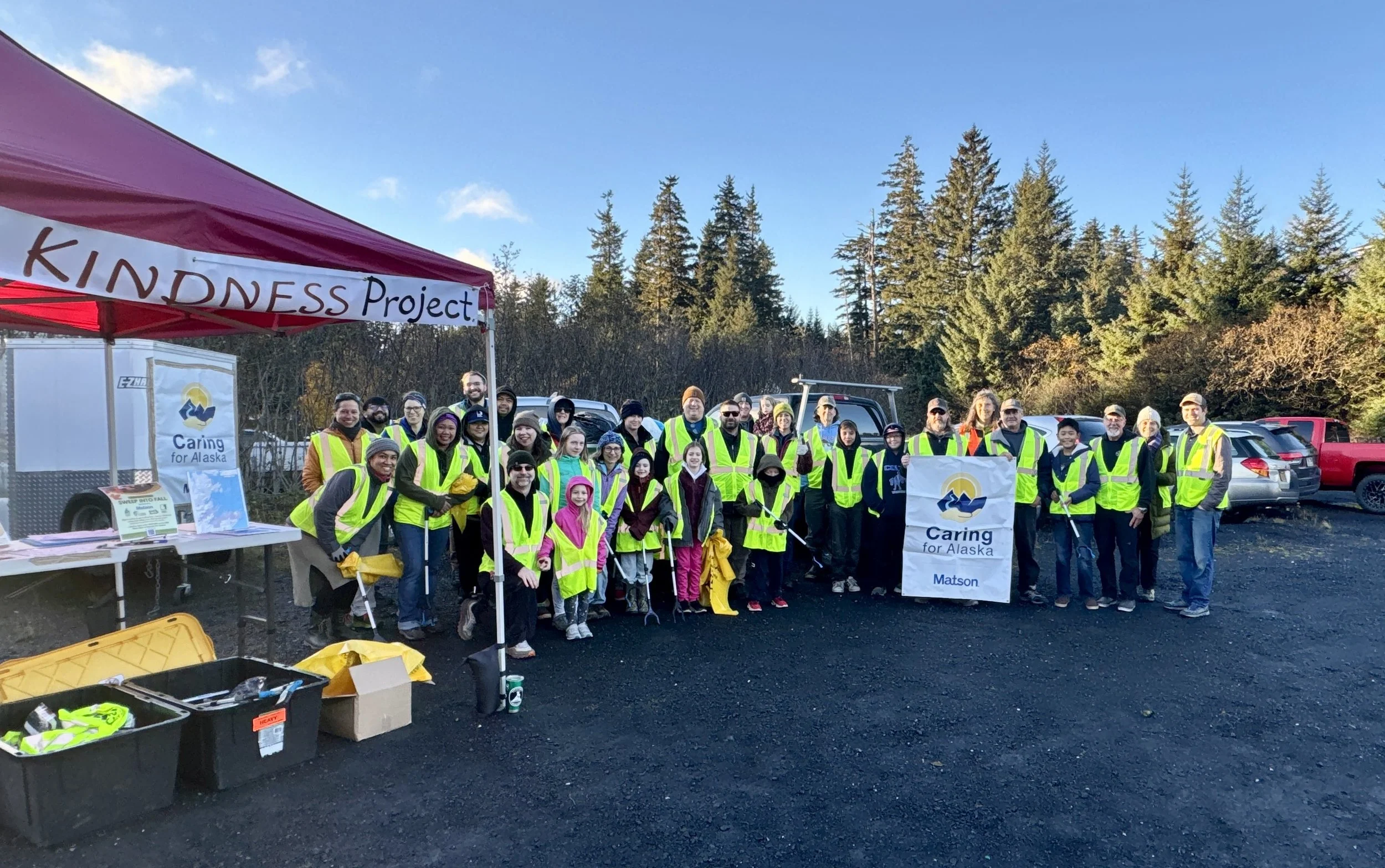 Yearly since 2021, Kodiak KINDNESS has partnered with Matson Caring for Alaska grant. KINDNESS, Matson and other partners such as Island Trails Network and Credit Union 1 team-up-to-clean-up Kodiak trails, beaches, roadways and recreation areas, encouraging our community to consider every day to be Earth Day. Keep an eye out for “Sweep Into Fall” event details every year, usually in October.